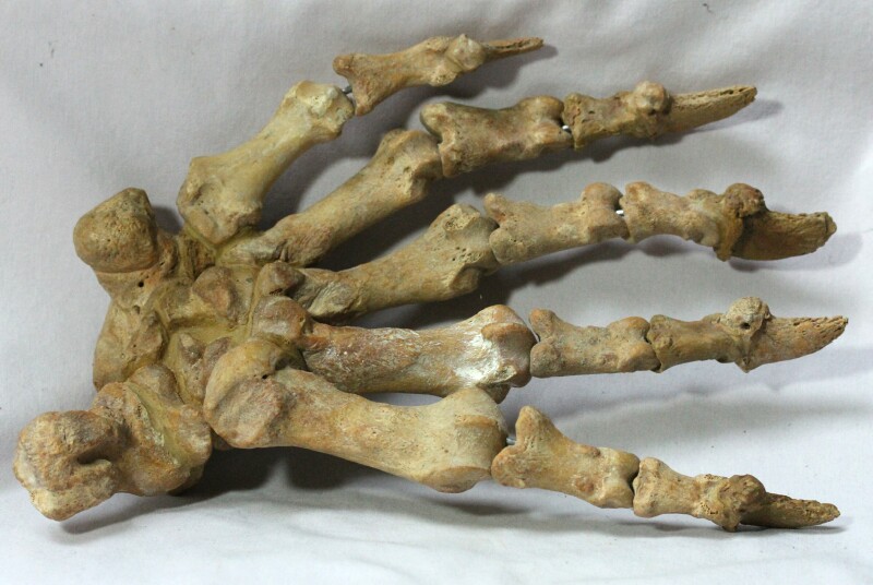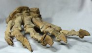 Ursus speleausClass Mammalia, Order Carnivora, Family Ursidae Geological Time: Pleistocene Size (25.4 mm = 1 inch): Fossil is 270 mm long (including long bone at rear) by 175 mm wide Fossil Site: Ural Mountains, Russia Fossil Code: MO14 Price: Sold |