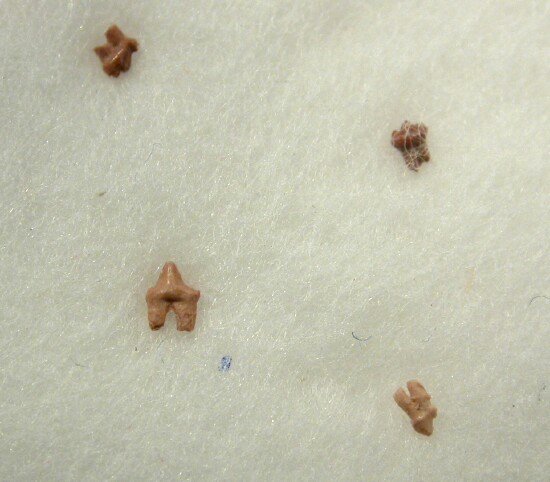 Morganucodon watsoniClass Mammalia; Order Triconodonta; Family Morganucodontidae Geological Time: Late Triassic (~225 million years ago) Size (25.4mm=1 inch): 1- 1.5 mm (each) Fossil Site: Fissure Infillings, Pant Quarry, Cardiff, Wales, United Kingdom Code: MORG02 Price: $825.00 - sold |
