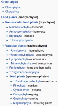 Trimerophytophyta (trimerophytes), and Pteridophyta (ferns