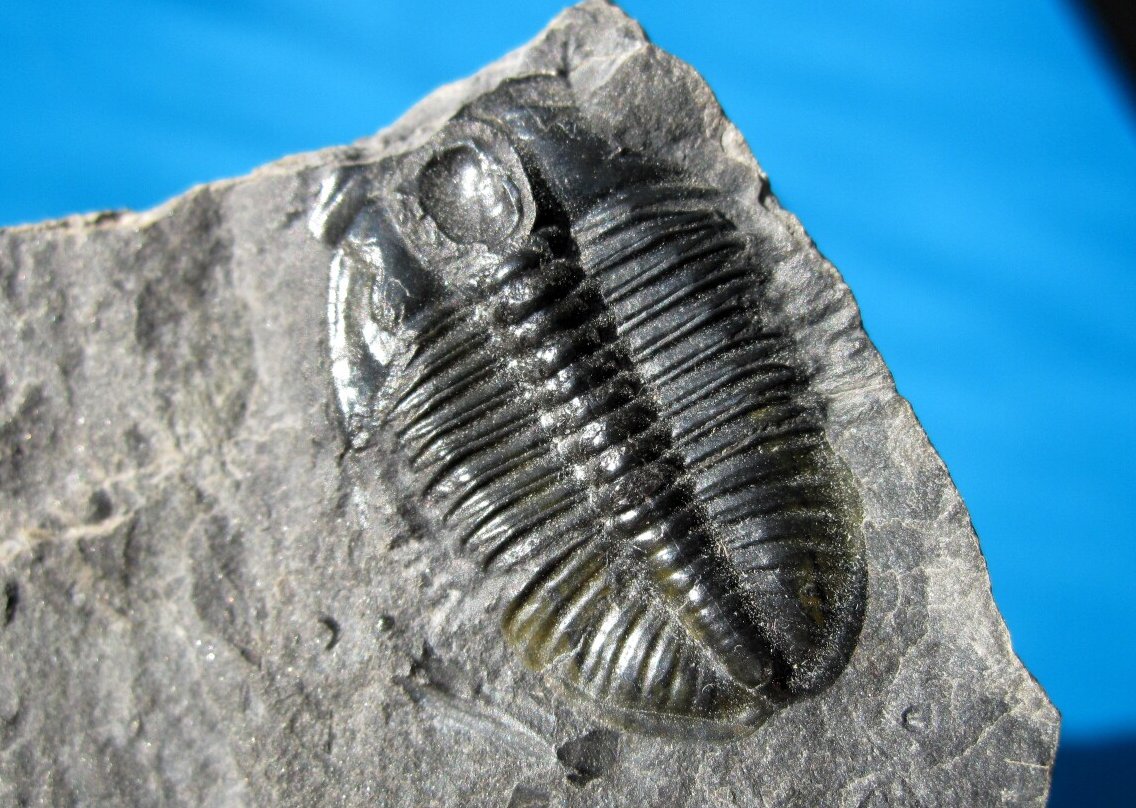 Ogygopsis typicalisTrilobite Order Ptychopariida, Family Alokistocaridae Geological Time: Middle Cambrian Size (25.4 mm = 1 inch): Trilobite is 26 mm in length on an irregular shaped 9 x 5 cm piece of limestone matrix Fossil Site: Undocumented Formation Near Area 51, Groom Range, Esmeralda County, Nevada Fossil Code: PFT384 Price: $195.00 - sold |