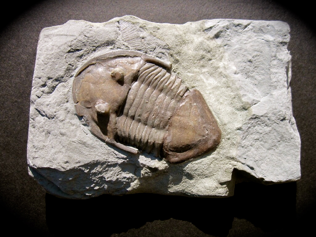 Isotelus maximusTrilobites Order Asaphida, Family Asaphidae Geological Time: Upper Ordovician Size (25.4 mm = 1 inch): Trilobite is 2 1/16” in length, on a 3 5/8” x 2 1/2” matrix base Fossil Site: Arnheim Member of the Richmond Formation, Mount Orab, Ohio Fossil Code: PFT741 Price: Sold |