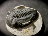 Hollardops mesocristataTrilobite Order Phacopida, Subfamily Asteropyginae Geological Time: Devonian Size: Trilobite is 1 7/8” on a flat lying piece of matrix Fossil Site: Oufaten, Morocco Code: PFT512 Price: $155.00