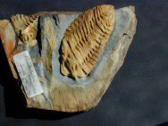 Neseuretus tristani Trilobite(Brongniarti 1817) Trilobite Order Phacopida, Family Calymenidae Geological Time: Ordovician Size (25.4mm=1 inch): The trilobite is 5 3/8" in length on a 7 x 8 1/4" plate Fossil Site: Valongo Formation, Valongo, Portugal Code: PFT188 Price: $650.00, now reduced to $425.00 |