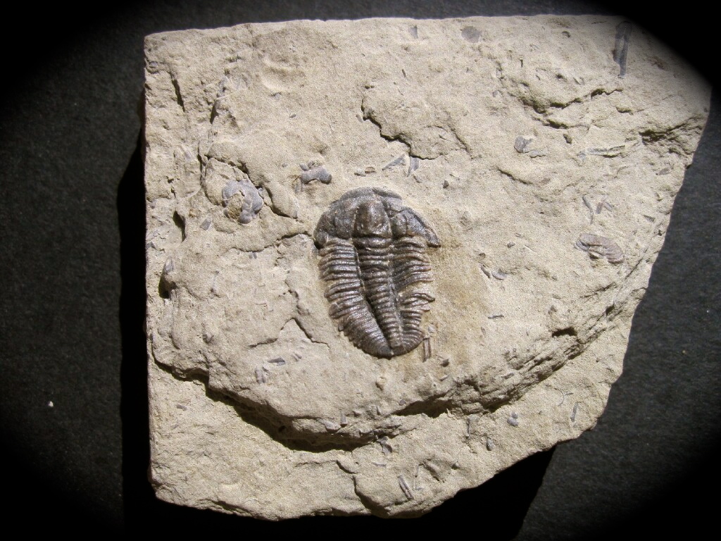 Ehmaniella quadrans(Hall and Whitfield) Trilobite Order Ptychopariida, Family Alokistocaridae Geological Time: Upper Cambrian Size: Trilobite is 5/8”, including the tail spine Fossil Site: Walsey Formation, Bear Tooth Lake, Montana Fossil Code: PFT783 Price: Sold |