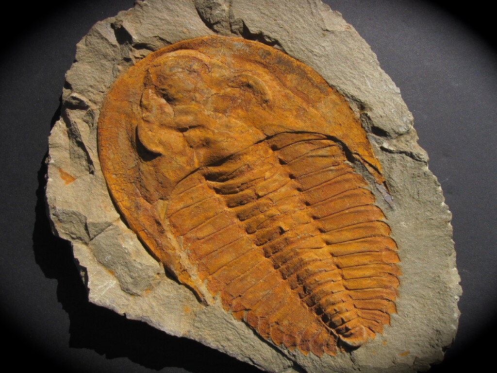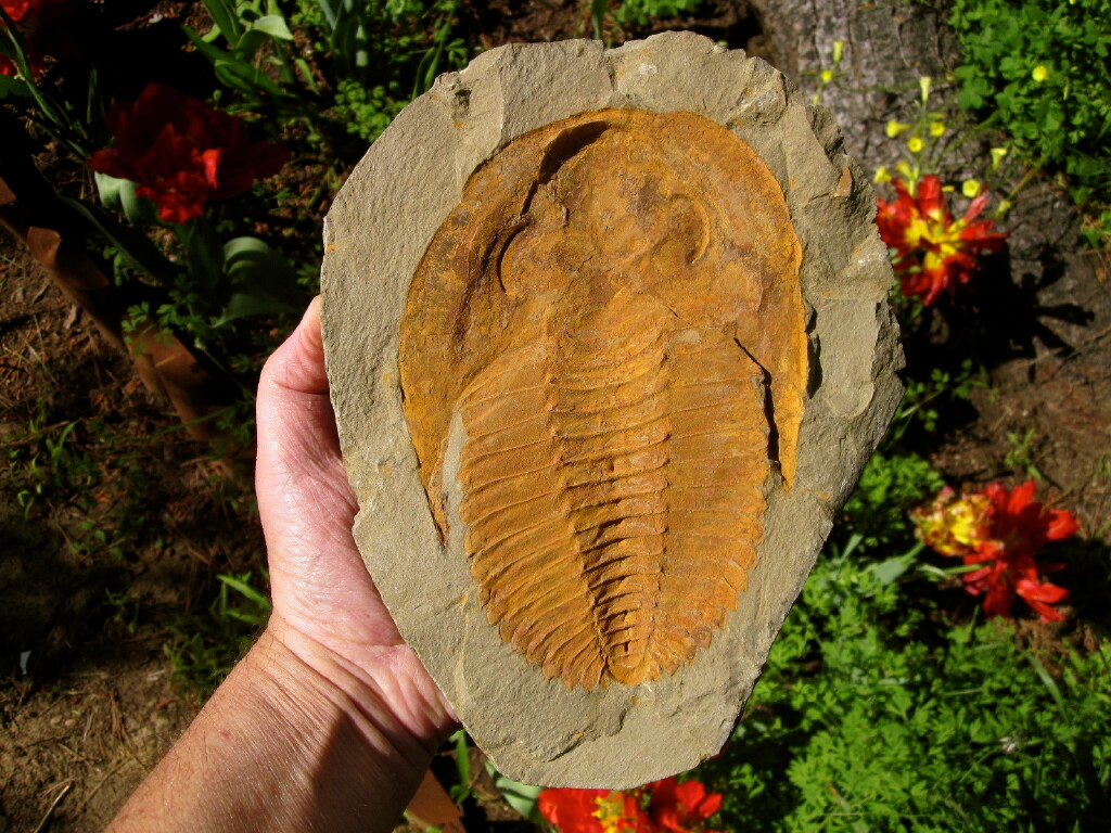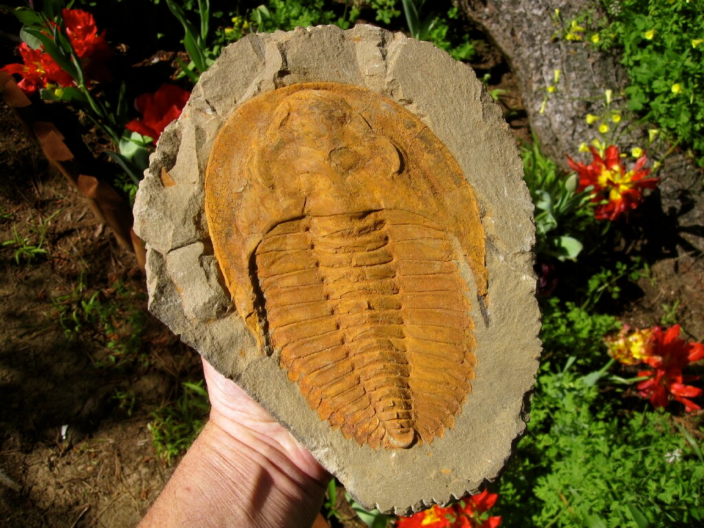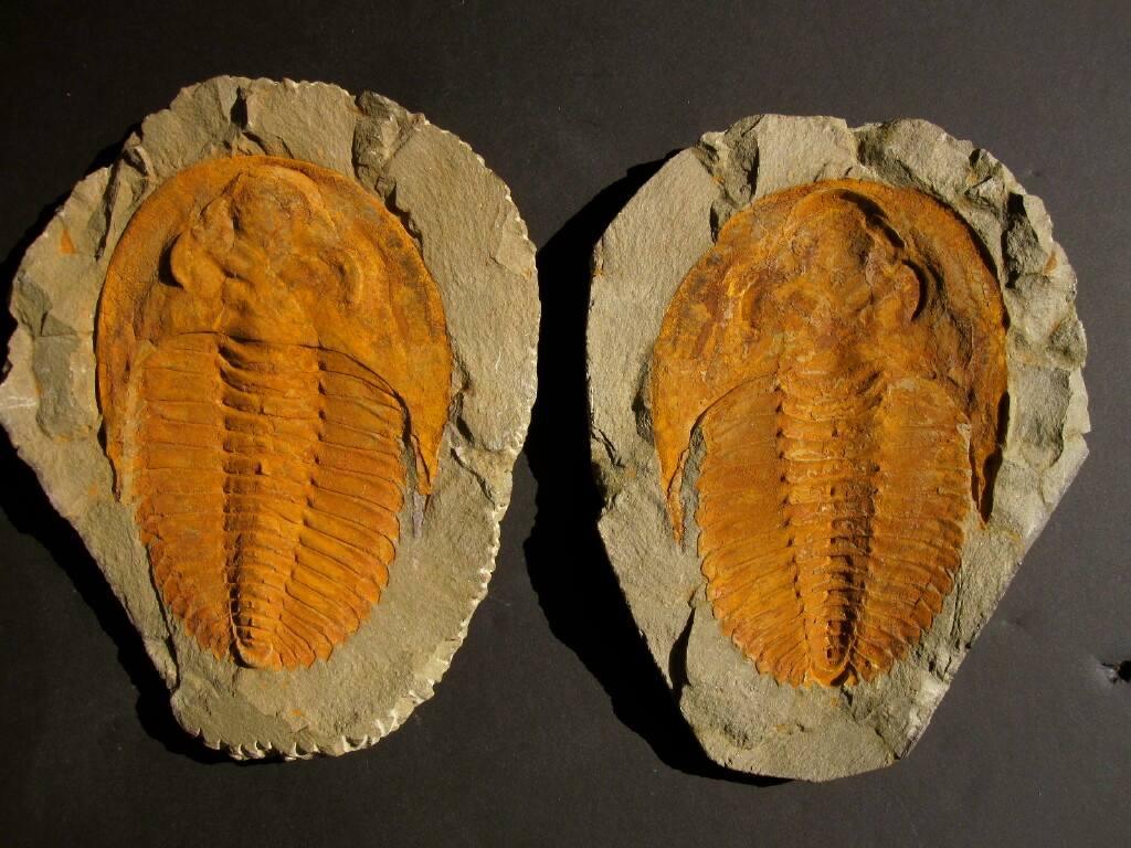 Cambropallas telestoTrilobite Order Redlichiida, Suborder Olenellina, Family Holmiidae Geological Time: Middle Cambrian, bel Wawrmast Formation Size: The trilobite is 7” in length on a 9 ½ x 7 ½” plate. The negative is the same size Fossil Site: Southern Morocco Code: PFT791 Price: $825.00 |