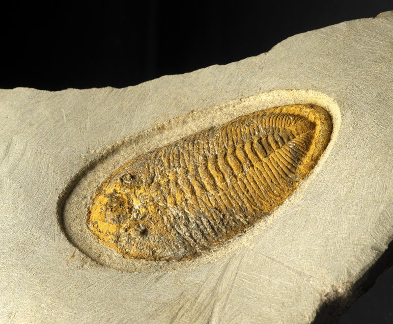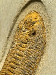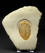 Eudolatites spTrilobite Order Asaphida, Superfamily Dalmanitoidea Geological Time: Ordovician Size (25.4mm=1 inch): Trilobite is 11 cm (4.5”) in length on a 25 cm x 21.5 cm (10 “ x 8.5”) plate Fossil Site: Schistes des Fezouata Superieurs Formation, Dra Valley, Morocco Fossil Code: PFT235 Price: $275.00 |