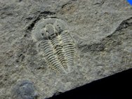 Otarion diffractumTrilobite Order Proetida, Family Aulacopleuridae Geological Time: Silurian Size (25.4mm=1 inch): 9 mm on a 40 mm x 40 mm plate Fossil Site: Kopaninske Formation, Kosov, near Beroun, Czech Republic Code: PFT131 Price: $115.00 |