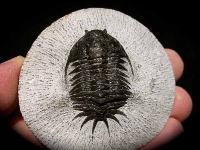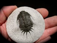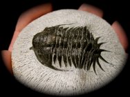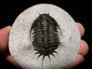 Crotalocephalus spTrilobite Order Phacopida, Superfamily Cheiruridae Geological Time: Middle Devonian Size: Trilobite is 1 5/8” on a 2 ½ x 2 5/8” rounded matrix base Fossil Site: Issimour, Alnif, Morocco Fossil Code: PFT610 Price: $370.00 |