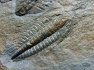 Parabolina spinulosaTrilobites Order Ptychopariida, Suborder Olenina, Family Olenidae Geological Time: Upper Cambrian Size (25.4mm=1 inch): Primary specimen with free cheeks is 19 mm on a 50 mm x 60 mm plate Fossil Site: Dolgellau Series (spinulosa biozone) Afon Mawwddach at Aber geriew, North Wales Code: PFT144 Price: $195.00 - sold |