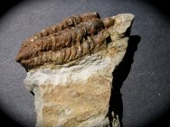 Neseuretus tristaniTrilobites Order Phacopida, Superfamily Cyclopygoidea, Family Cyclopygidae Geological Time: Ordovician Size: 62 mm on an 80 mm x 80 mm plate Fossil Site: Formation Unknown, Calzada (Ciudad de Real), Spain Fossil Code: PFT103 Price: $75.00 |