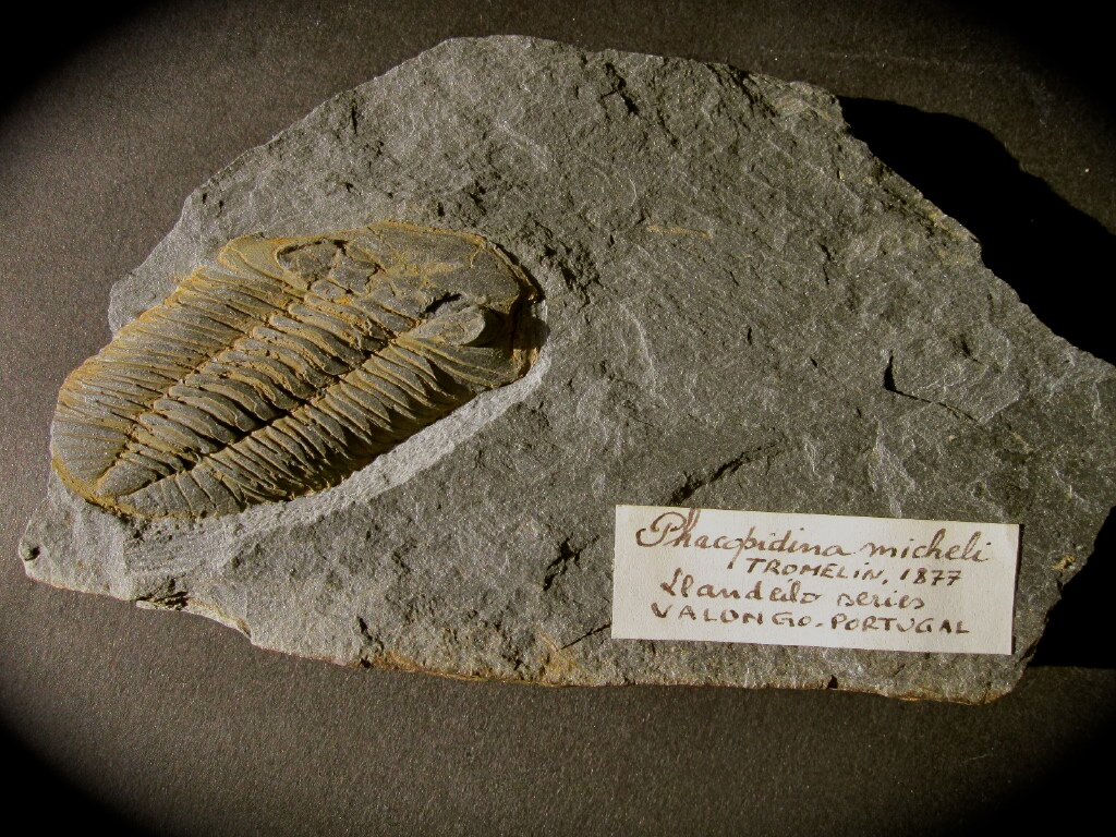 Phacopidina micheliTrilobite Order Phacopida, Family Acastidae Geological Time: Ordovician Size: The Ectillaenus trilobite is 2 1/2” in length on a 5 1/8 x 3 1/4” plate Fossil Site: Valongo Formation, Covelo, Portugal Fossil Code: PFT598 Fossil Price: Sold |