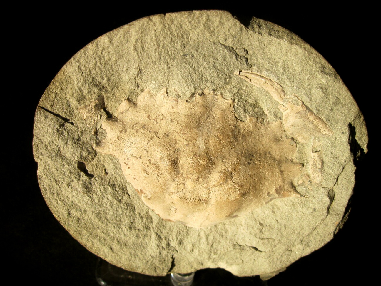 Portunites c.f. triangulumSubphylum Crustacea, Class Malacostraca, Order Decapoda, Superfamily Portunoidea Geological Time: Oligocene Size: Fossil crab is 2 ¾” in width by 1 ¾” in length on a rounded concretion Fossil Site: Lincoln Creek Formation, Washington State Fossil Code: PFD34 Price: $150.00 |
