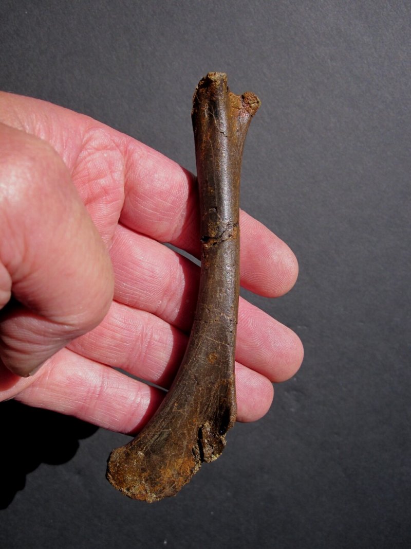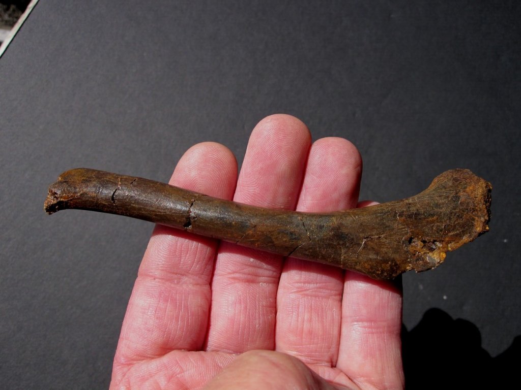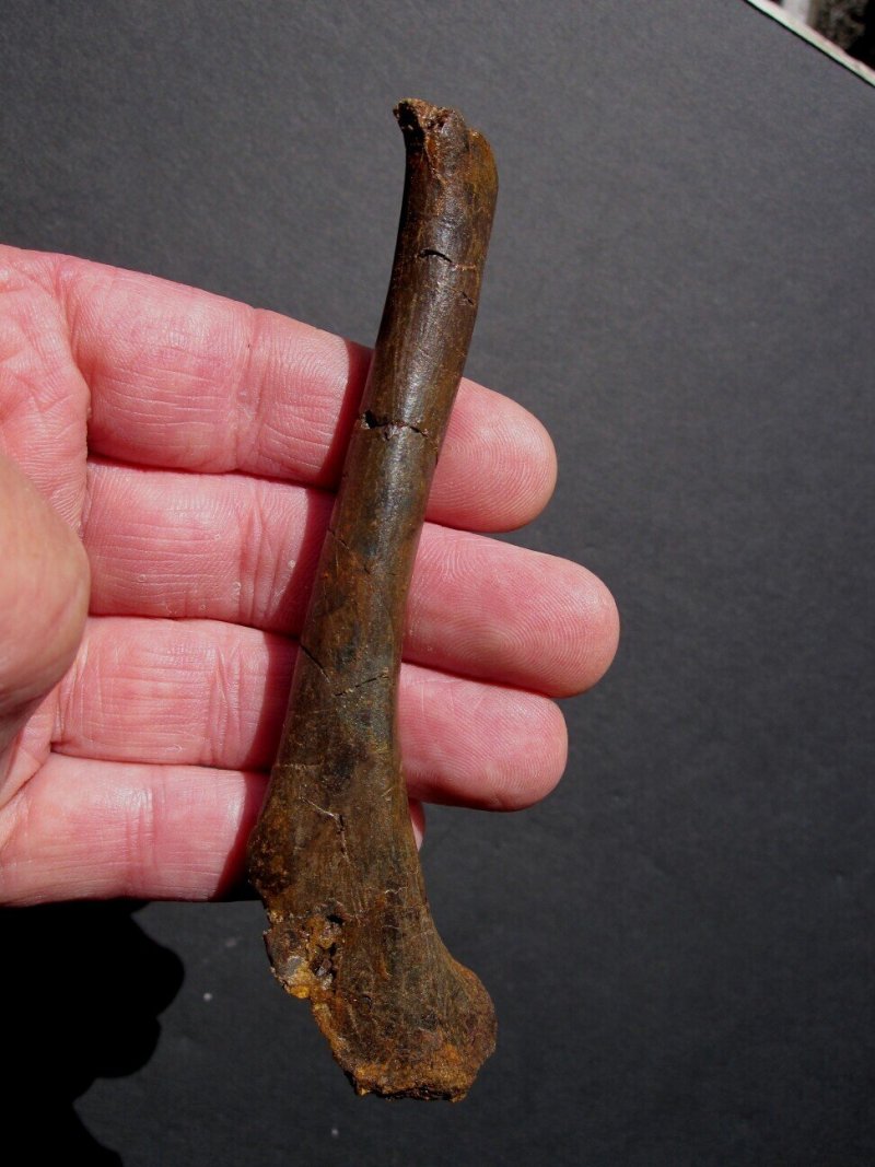 Dromaeosaur Dinosaur BoneClass Reptilia, Superorder Dinosauria, Order Saurischia, Suborder Theropoda, Infraorder Deinonychosauria, Family Dromaeosauridae Geological Time: Late Cretaceous Size: Dinosaur bone is 13 cm (5 3/16”) in length Fossil Site: Hell Creek Formation, Harding County, South Dakota Fossil Code: PFV515 Price: $575.00 |