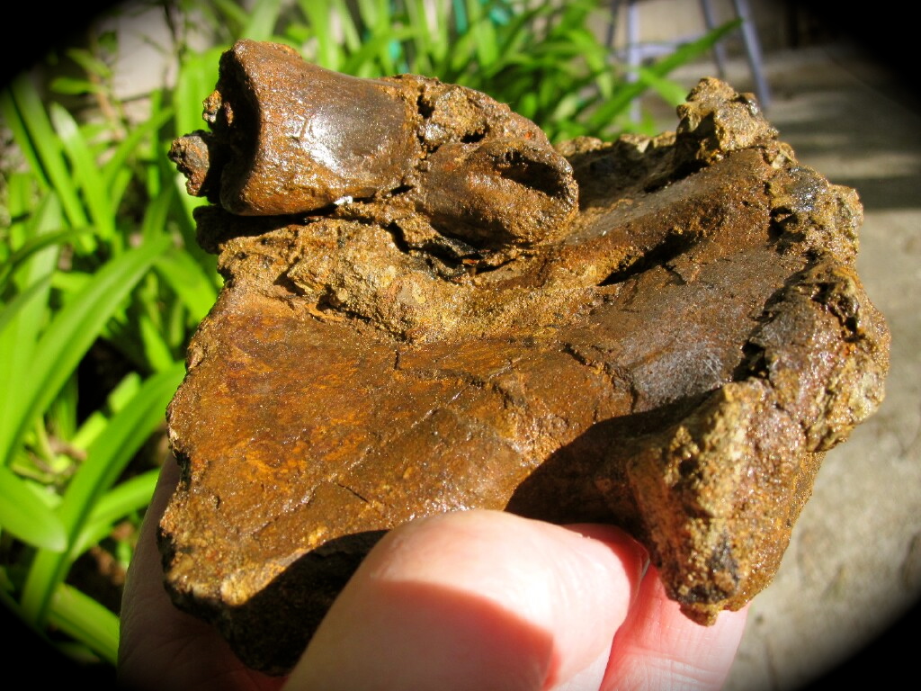 Bone left in situ with a Struthiomimus toe bone on the underside.