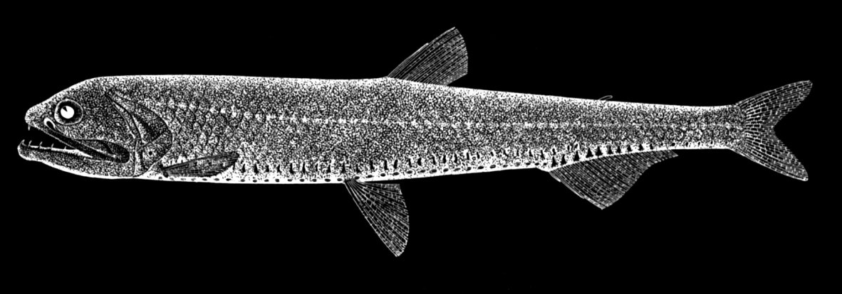Vinciguerria sp (Lightfish)(Danilczenko 1947) Class Actinopterygii, Order Stomiiformes, Family Phosichthyidae Geological Time: Middle Oligocene Size (25.4 mm = 1 inch): The fossil fish 27 mm on a 6.5 x 5 cm plate Fossil Site: Rowe, Carpathian Mountains, Poland Fossil Code: PFF330 Price: Sold |