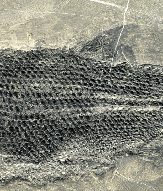 Sinoeugnathus kuichouensisClass Actinopterygii, Order Paleonisciformes, Family Paleoniscidae Geologic Time: Triassic Size (25.4mm=1 inch): Fish fossil 20 cm (8”) in length on a 27.7 cm x 13 cm (5.5 x 11”) plate Fossil Site: Huixia Beds, Guanglin, Guizhou Province, China Code: PFF211 Price: Sold |