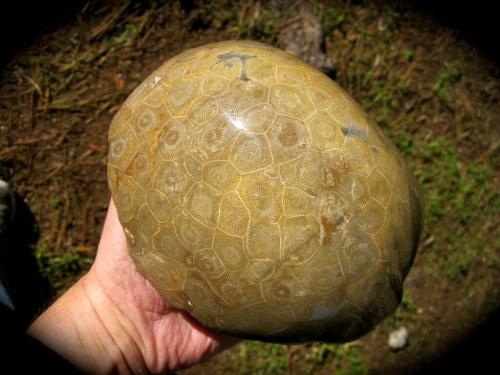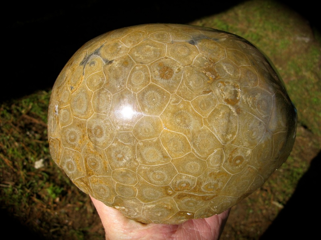 HexagonariaPhylum Cnidaria, Order Stauriida Geological Time: Devonian Size: The coral fossil is 6 1/4” x 5 1/8” in diameter and 2 3/8” in depth Fossil Site: Western Sahara Desert, Morocco Fossil Code: PFO471 Price: $85.00 |