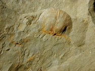 Zygobolbina conradi Ostrapods and Chonetid BrachiopodPhylum Arthropoda, Subphylum Crustacea, Class Ostracoda, Order Palaeocopida Geological Time: Middle Silurian Size (25.4mm=1 inch): Ostracod plate is 100 x 50 mm (4 x2”); Ostracods average 2-3 mm. Chonetid is 8 mm in diameter; on a 7 x 8 cm plate Fossil Site: Rose Hill Formation (?), Wardensville, West Virginia Fossil Code: PFO187 Price: $135.00 - sold |