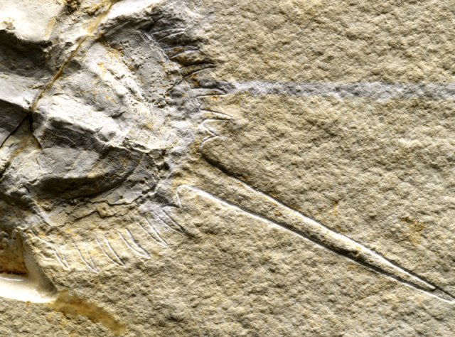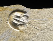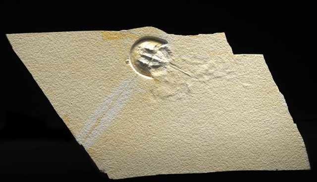 Mesolimulus walchiPhylum Arthropoda, Subphylum Chelicerata, Class Xiphosura Geological Time: Jurassic Size (25.4 mm = 1 inch): Fossil is 135 mm in length by 65 mm in width ( 5 1/8 X 2 ¾”) on a large 60 x 33 cm (23½ x 13”) plate Fossil Site: Solnhofen Limestone, "Plattenkalk” Malm Zeta 2, Eichstatt, Germany Fossil Code: PFO174 Price: $975.00