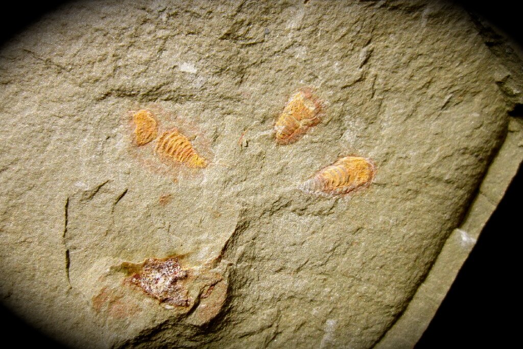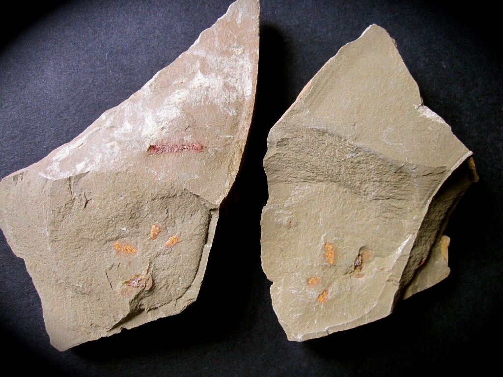Chlupacaris dubiaPhylum: Arthropoda, Aglaspida Incertae sedis, formerly Subphylum: Chelicerata, Class Merostomata, Order Aglaspida Geological Time: Ordovician Size: Fossils are 3/16 to 5/16” (4-8 mm) on a 4 ¾ x 2 5/8” positive and negative plate Fossil Site: Upper Tiouririne Formation, Dra Valley, Erfoud, Southeast Morocco Fossil Code: PFT628 Sold |