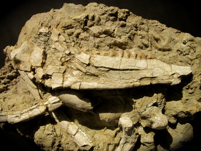Camelus indet (?)Class Mammalia, Order Artiodactyla, Family Camelidae Geological Time: Miocene, Barstovian Stage Size: Fossil is 24.7 cm (9 3/4”) in length on a large 35.5 x 26.6 cm (14 x 10 1/2”) piece of matrix. The plate weighs 13 pounds Fossil Site: Caliente Formation (possibly) Cuyama Valley Badlands, Ventura County, California Fossil Code: PFV377 Price: Sold |