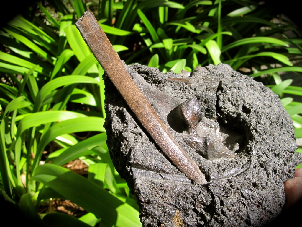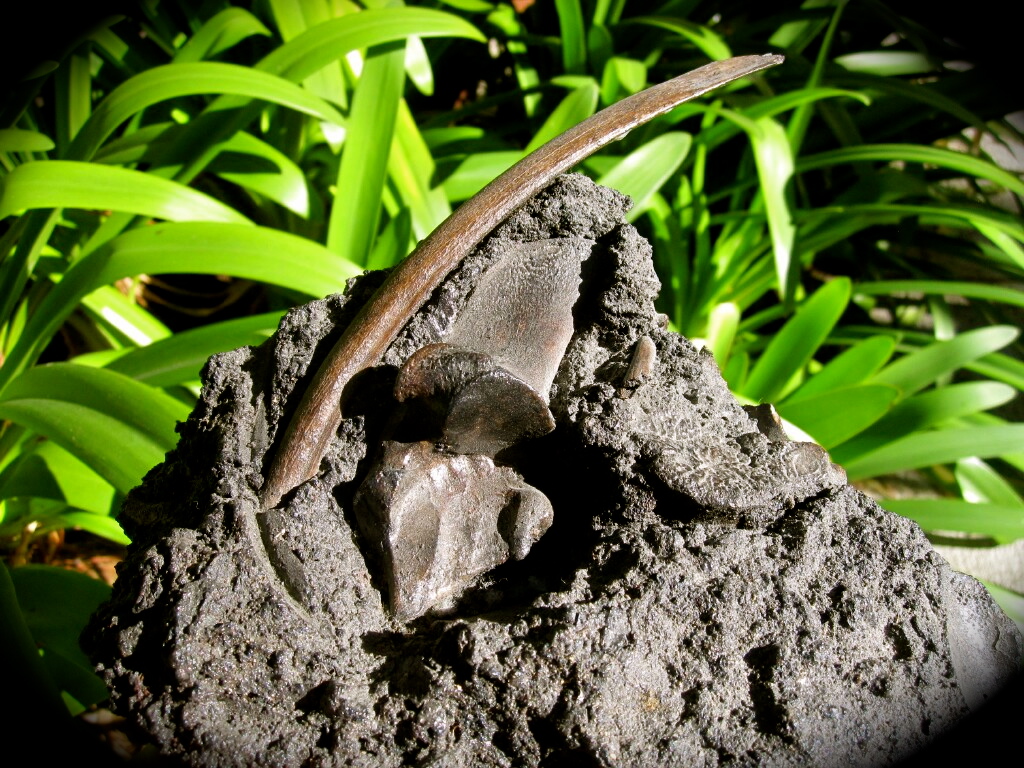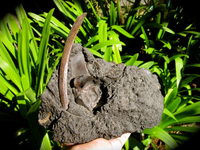 Cerves nannodes (Tule Elk)Order Artiodactyla, Family Cervidae Geological Time: Pleistocene Order Artiodactyla, Family Bovidae (cow) Size: The left rib is 6 ½” in length. The full piece is 8 x 6 x 5” Fossil Site: Kern County, California Fossil Code: PFV555 Price: Sold |