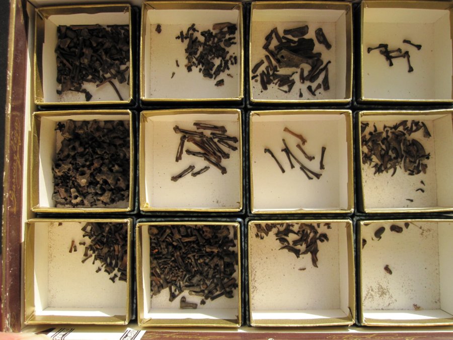 bones are sorted by type: femur, teeth, digits etc. Twelve small