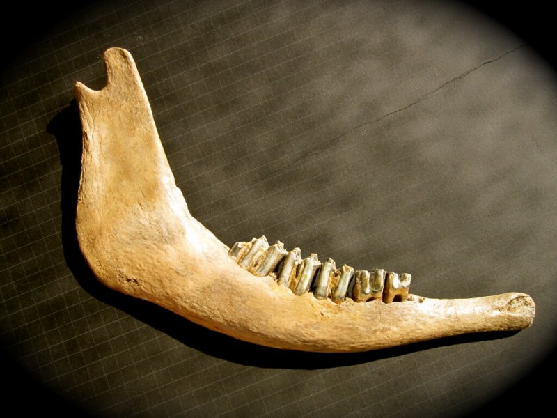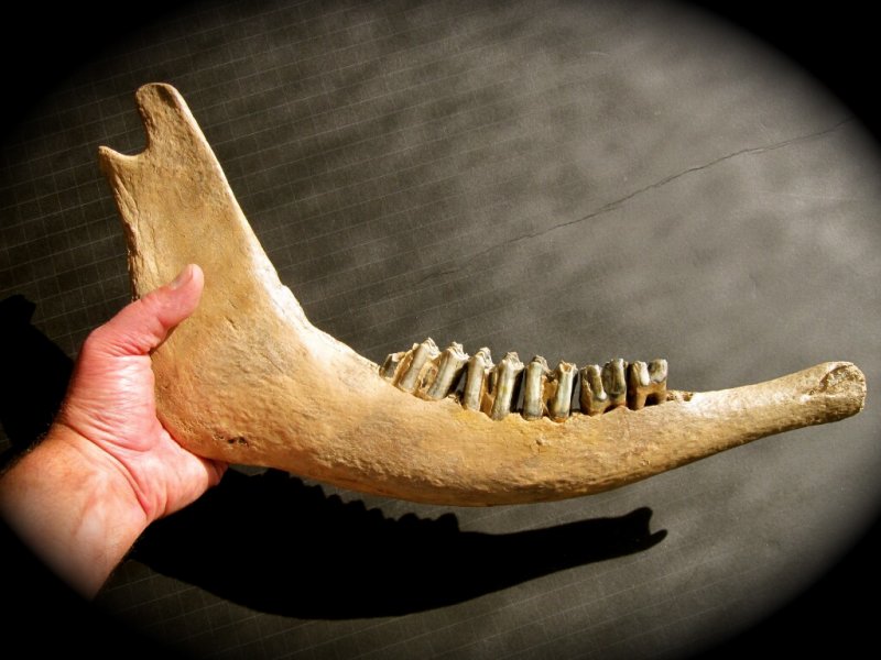 Megaloceros giganteusClass Mammalia, Order Artiodactyla, Family Cervidae Geological Time: Pleistocene Size: Fossil jaw is 16” in length x 9 ½” high Fossil Site: River Rhine, Worms, Germany Fossil Code: PFV382 Price: $350.00 |