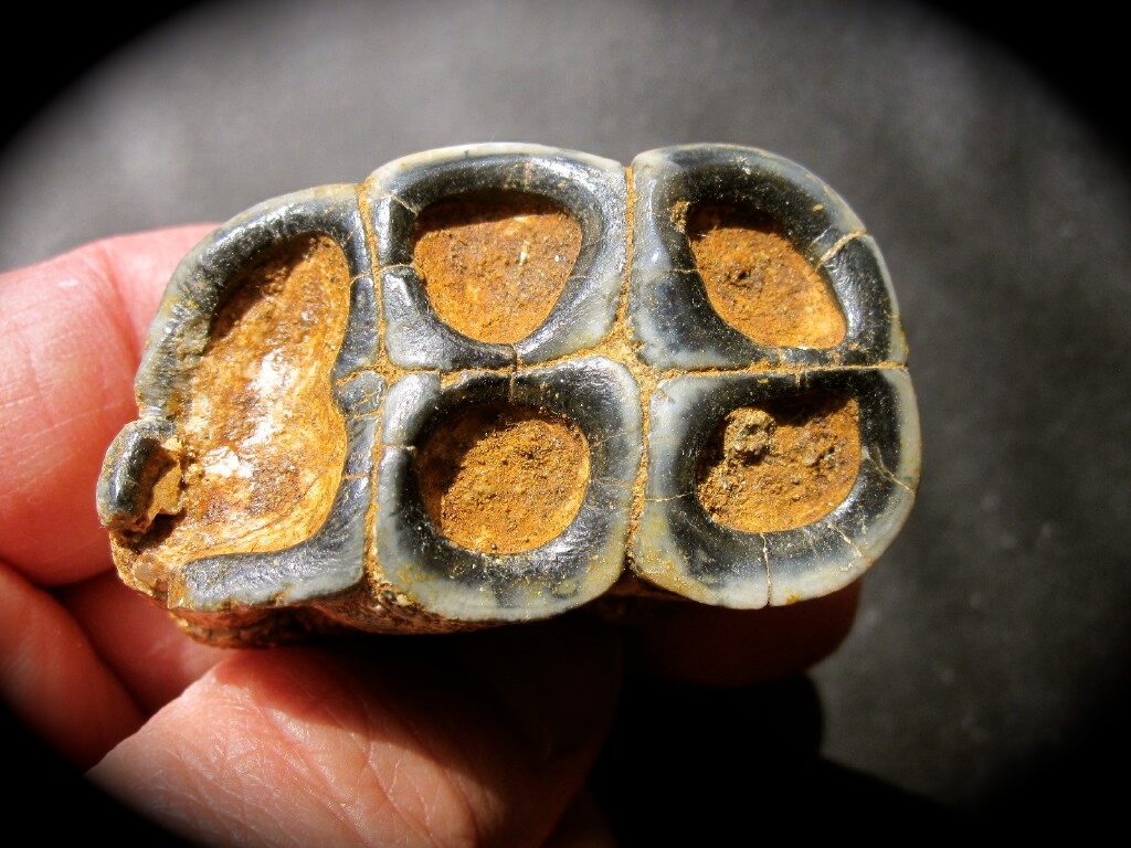 are the teeth of Desmostylus hesperus, an extinct placental mammal