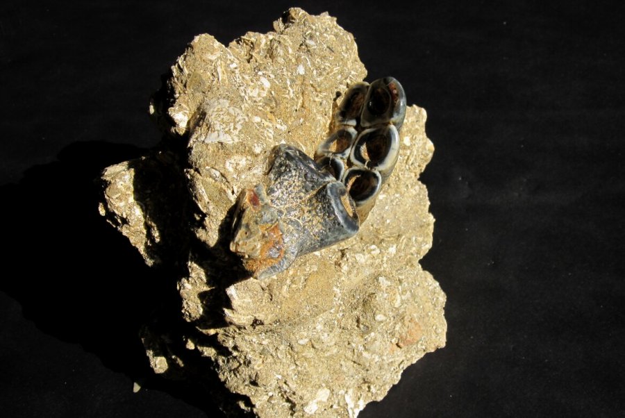 are the teeth of Desmostylus hesperus, an extinct placental mammal