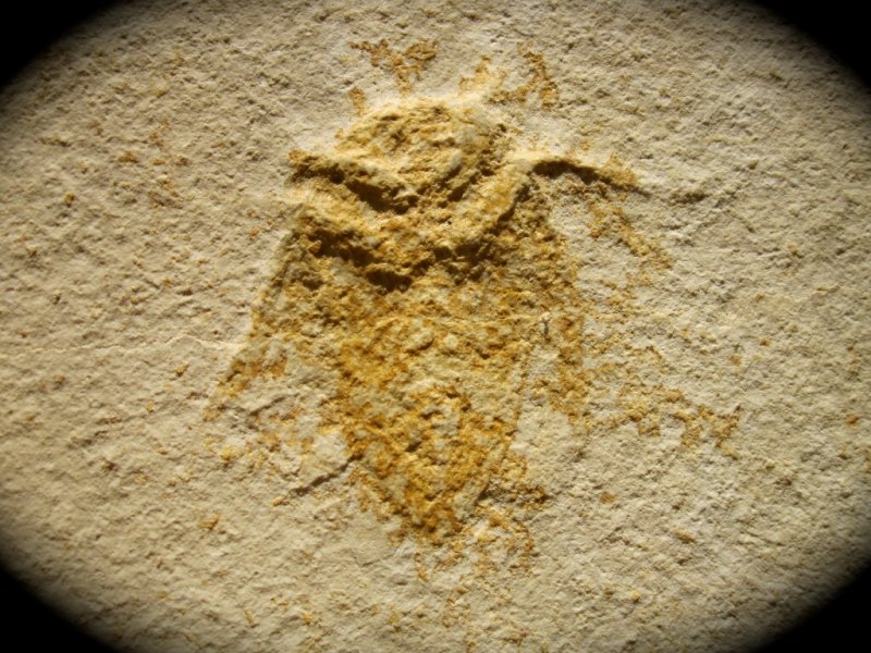 Mesobelostonum deperditum (waterbug)(Germar 1839) Order Hemiptera, Family Belostomatidae Geological Time: Jurassic Size (25.4 mm = 1 inch): Waterbug fossil is 1 ¾” in length on an 8 x 9” unbroken plate of lithographic limestone Fossil Site: Solnhofen Lagerstätte, "plattenkalk” Malm Zeta 2, Eichstatt, Germany Fossil Code: PFS233 Price: $550.00 |