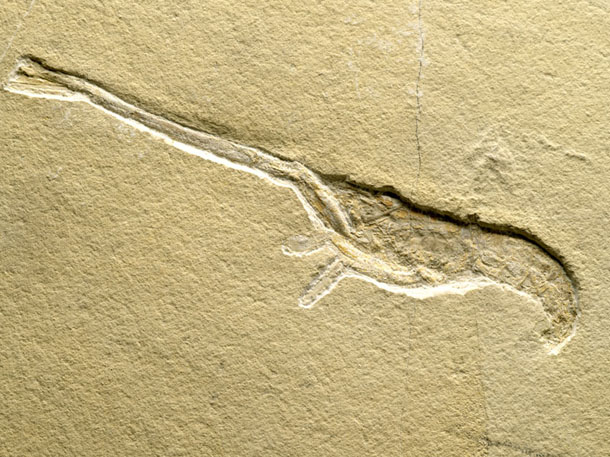 Mecochirus longimanatus(Schlotheim 1820) Class Malacostraca, Order Decapoda, Superfamily Glypheoidea Geological Time: Upper Jurassic Size: Lobster fossil is 13.3 cm (5 1/4”) in length on a 26.6 x 18.4 cm (10 ½ x 7 1/4”) plate Fossil Site: Solnhofen Limestone, "plattenkalk” Malm Zeta 2, Eichstatt, Germany Fossil Code: PFS006 Price: $185.00 |