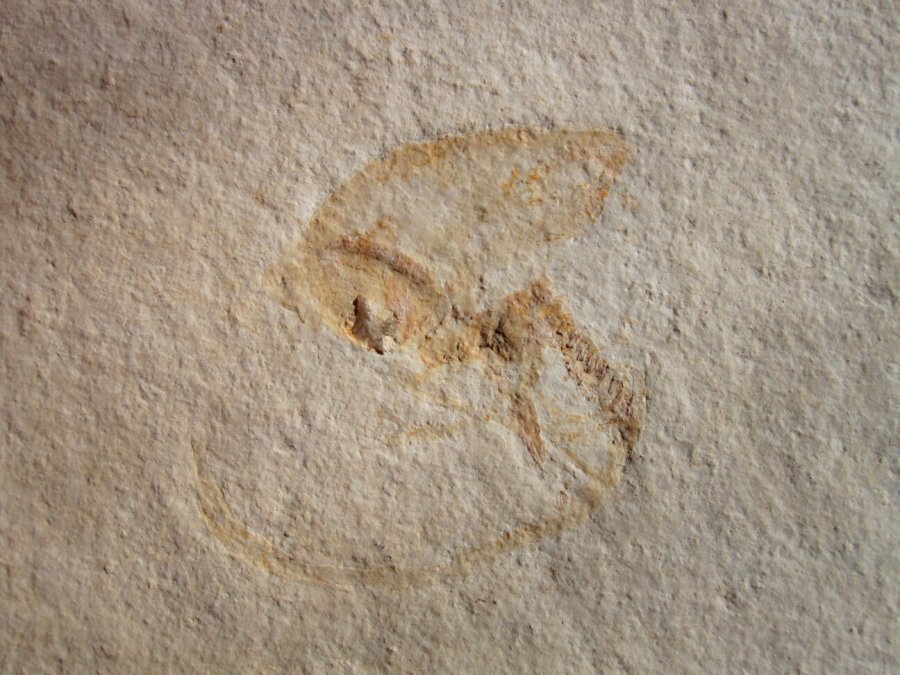 Clausocaris lithographicaPhylum Arthropoda, Class Thylacocephala Geological Time: Upper Jurassic Size: Fossil is 3.5 cm in length on a 11 x 15 cm plate Fossil Site: Solnhofen Limestone, "plattenkalk” Malm Zeta 2, Eichstatt, Germany Fossil Code: PFS008 Price: $120.00 - sold |