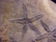 Astropecten matilijaensisPhylum Echinodermata, Class Asteroidea (starfish or seastars) Geological Time: Upper Eocene Size: Each starfish measures about 75 mm Fossil Site: Cozy Dell Formation, Upper Sespe Creek, Ventura County, California |