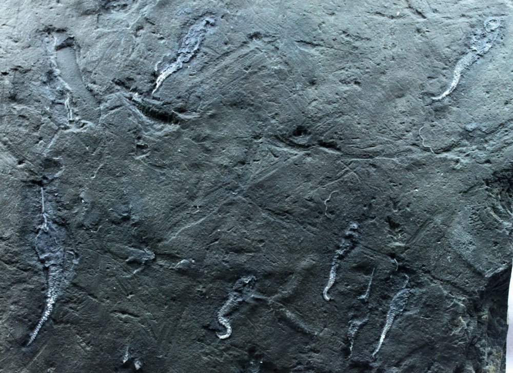 Syringocrinus paradoxicusPhylum Echinodermata (?), Class Homiostelea, Order Soluta Geological Time: Upper Ordovician Size mm (25.4 mm = 1 inch) Fossils are 20 mm to 60 mm long (if straight) on a 200 mm by 160 mm matrix Fossil Site: Neuville Formation, Trenton Group, Quebec City, Canada Fossil Code: STF21 Price: Sold |
