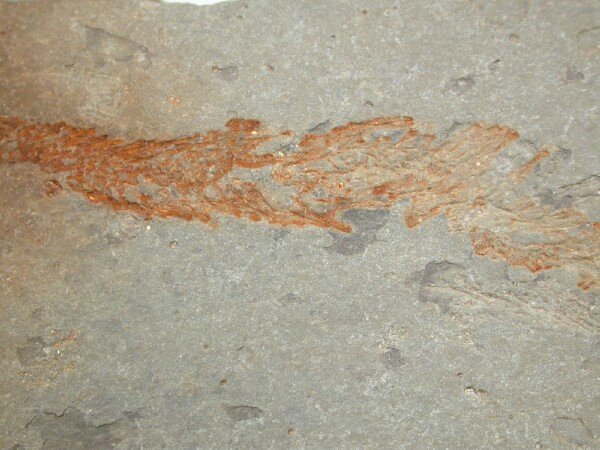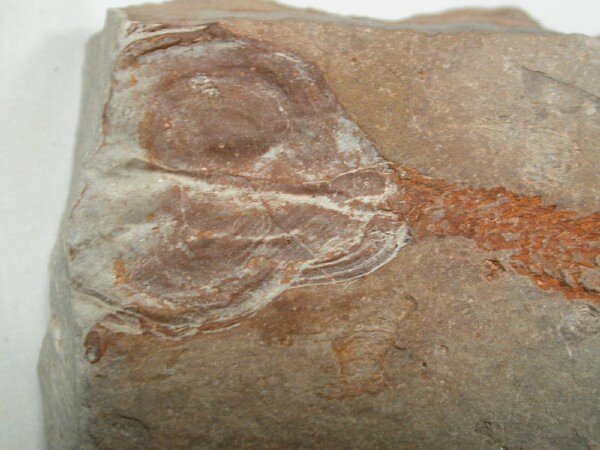 Cowralepis mclachlaniPlacodermi, Phyllolepida Geological Time: Middle Devonian Size: Head and trunk shield: 30 mm in length (as preserved) and 30mm wide tail: 110 mm along backbone on a 50 mm by 155 mm matrix Fossil Site: Merriganowry Shale Member, Cowra, New South Wales, Australia |