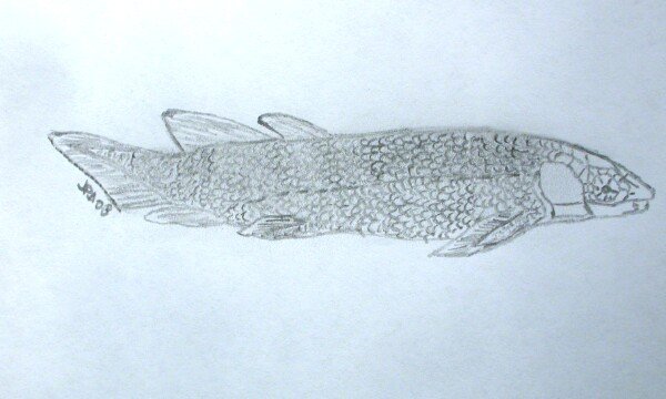 Dipterus valenciennesiInfraphylum Gnathostomata, Superclass Osteichthyes, Class Sarcopterygii, Subclass Dipnoi, Family Dipteridae Geological Time: Middle Devonian (385 Million Years Old) Size: 125 mm Fossil Site: Achanarras Slate Quarry, Caithness, Scotland