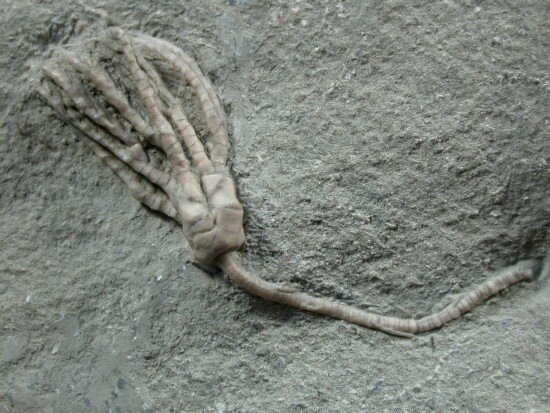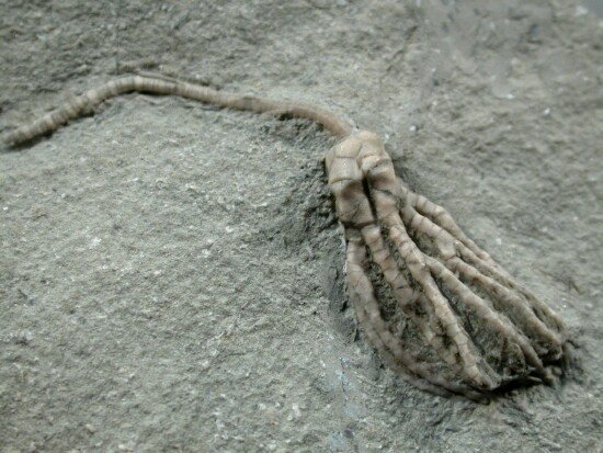 Abrotocrinus coreyiPhylum Echinodermata, Class Cladida, Family Staphylinocrinidae Geological Time: Lower Mississippian Osagean Stage (345 m.y.a) Size: Crown: 27 mm long by 18 mm wide, stem: 38 mm;on a 66 mm by 80 mm matrix Fossil Site: Crawfordsville, Indiana |