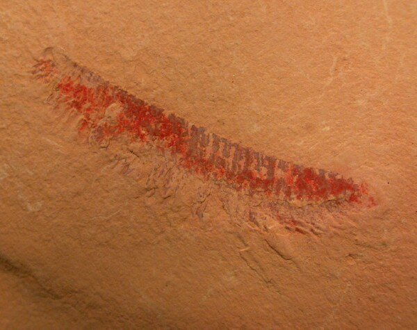 by iron-rich clay minerals or hematite. The fossils are commonly