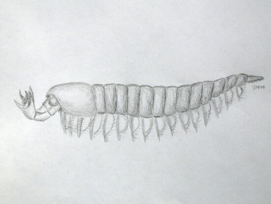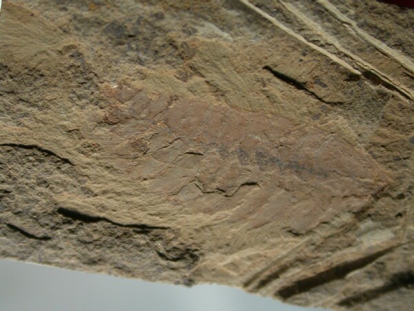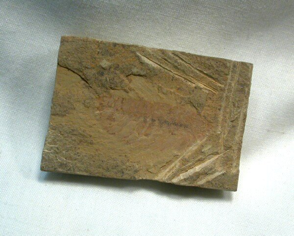 Haikoucaris ercaiensisPhylum Arthropoda; Subphylum: Chelicerata (?) Geological Time: Early Cambrian (~525 million years ago) Size (25.4mm=1 inch): 28 mm long on a 43 mm by 30 mm matrix Fossil Site: Chengjiang Maotianshan Shales - Quiongzhusi Section, Yu’anshan Member, Heilinpu Formation, Mafang Village, Anning, Kunming, Yunnan Province, China |