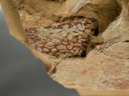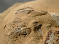 Tuzoia sinensis (Guanshan above Chengjiang)Phyllocarid - Geological Time: Early Cambrian (~525 million years ago) Size (25.4mm=1 inch): 25 mm long by 15 mm across on a 100 mm by 80 mm matrix Fossil Site: Canglangpu Formation, Guanshan Member, Gang Tou Chun, Yunnan Province, China |