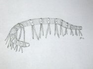 Luolishania longicrurisPhylum Lobopodia Geological Time: Early Cambrian (~525 million years ago) Size: 12 mm long each Fossil Site: Chengjiang Maotianshan Shales - Quiongzhusi Section, Yu’anshan Member, Heilinpu Formation, Mafang Village, Anning, Kunming, Yunnan Province, China