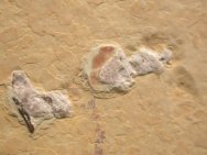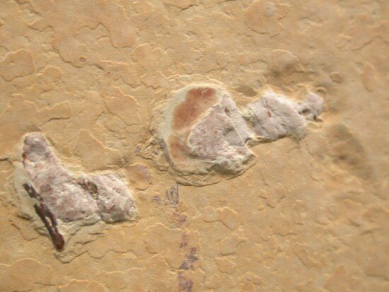 a pair of coprolites (fecal fossils). The one at the top is a cast,