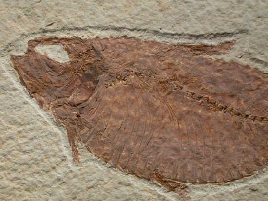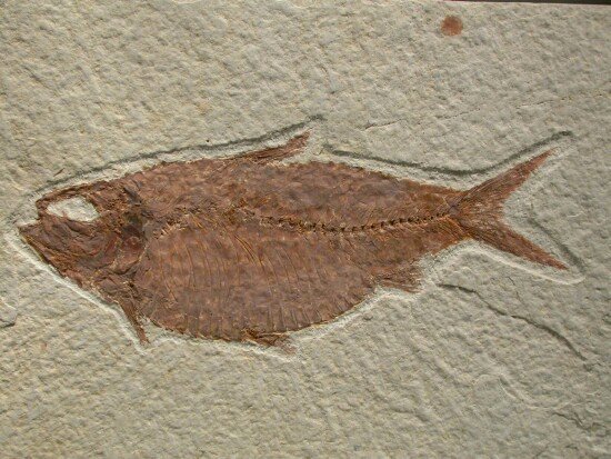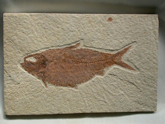 Knightia altaOrder Clupeifomes, Family Clupeidae Geological Time: Eocene Size (25.4 mm = 1 inch): 125 mm in length on 162 mm by 115 mm matrix Fossil Site: Green River Formation, Fossil Lake, Kemmerer, Wyoming |