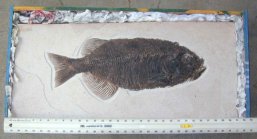 Name: Phareodus encaustus Geological Time: Eocene Size: mm (25.4mm=1 inch): 520 mm (26 1/2 inches) in length on 790 by 150 by 70 mm limestone matrix (31 by 15 by 1 3/4 inches). Fossil Site: Green River Formation, Wyoming