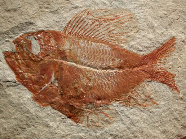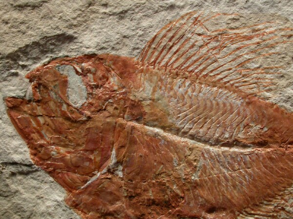 Ctenothrissa sp.Geological Time: Middle Cretaceous, Cenomanian Stage Size: 78 mm high, 90 mm in length Fossil Site: Lebanese Lagetstatt, Hajoula, Lebanon |