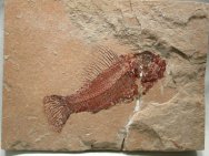 Pateroperca libanicaCtenothrissiformes; Aulopidae Geological Time: Middle Cretaceous, Cenomanian Stage (95 million years ago) Size (25.4 mm = 1 inch): 80 mm in length on a 94 mm by 123 mm matrix Fossil Site: Lebanese Lagerstatt, Hajoula, Lebanon |