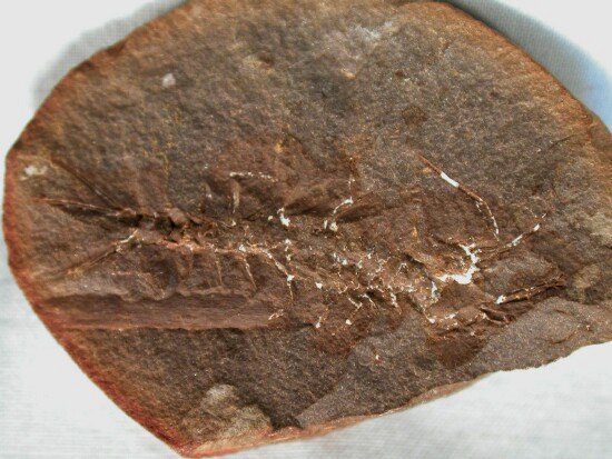 Acanthotelson stimpsoniClass Crustacea, Order Syncarida Geological Time: Pennsylvanian (~300 m.y.a.) Size: Fossil is 40 mm lon,g Matrix: 52 mm by 40 mm Fossil Site: Mazon Creek, Pit 11, Francis Creek shale, Braidwood, Illinois