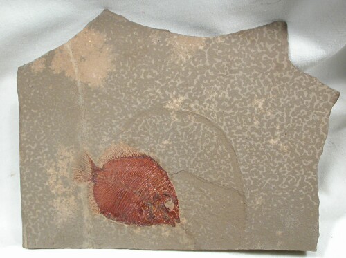 Discoserra pectinodonClass Actinoptergyii, Order Guildayichthyformes, Family Guildayichthyidae Geological Time: Mississippian (~320 m.y.a.) Size: Fish fossil is 62 mm long on a 185 mm by 95 mm and 150 mm by 120 mm matrix pair Fossil Site: Heath Shale Formation, Bear Gulch Limestone, Fergus County, Montana |