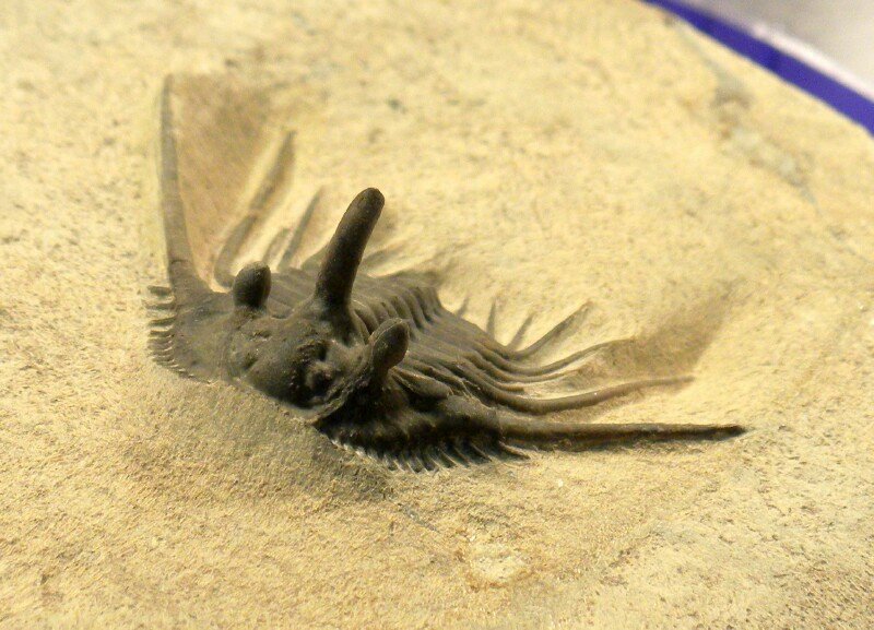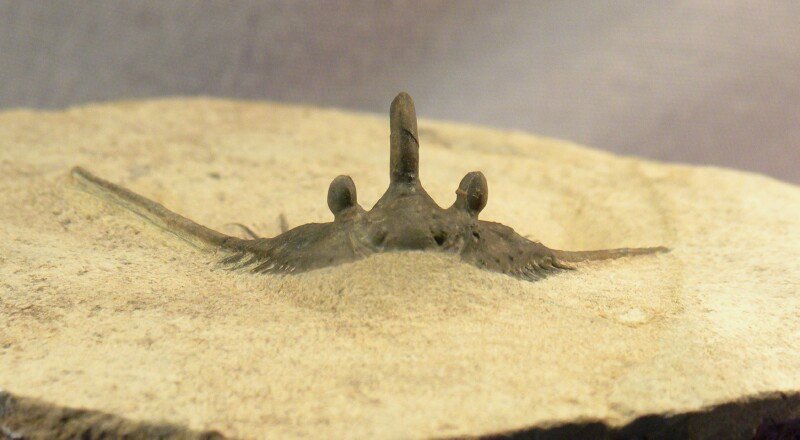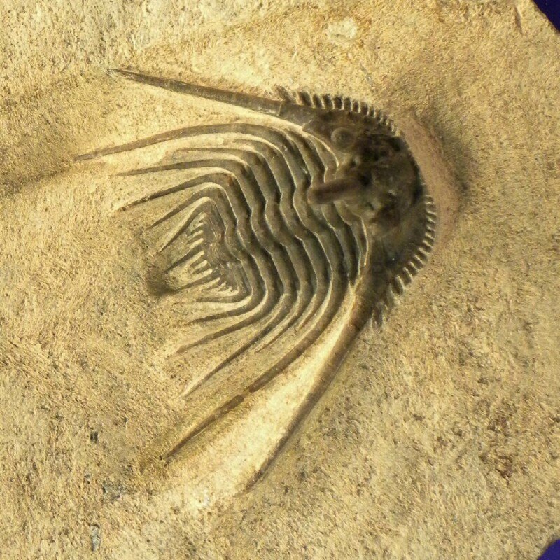 Kettneraspis prescheriTrilobites Order Lichida, Family Odontopleuridae Geologic Time: Middle Devonian Size (25.4 mm = 1 inch): Trilobite is 30 mm long by 42 mm wide (with spines) on an 75 mm by 75 mm matrix Fossil Site: Taouz, Morocco Code: 13167 Price: Sold |